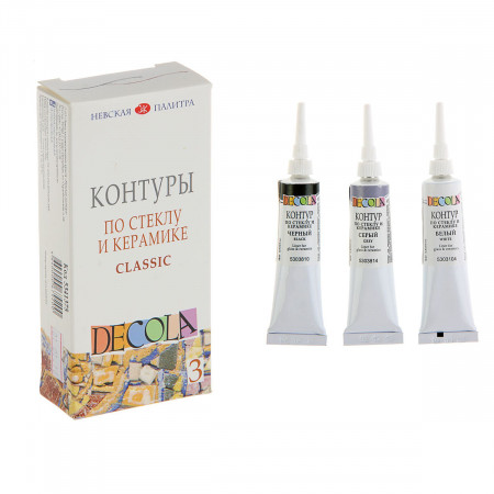 Набор контуров по стеклу и керамике 18мл 3 цвета Decola Classic Невская палитра 5341375 черный, белый, серыйКод: 5341375 Производитель: Невская палитра Страна: Российская Федерация Упаковка: 20 Штрихкод: 4640000679200 Характеристики: